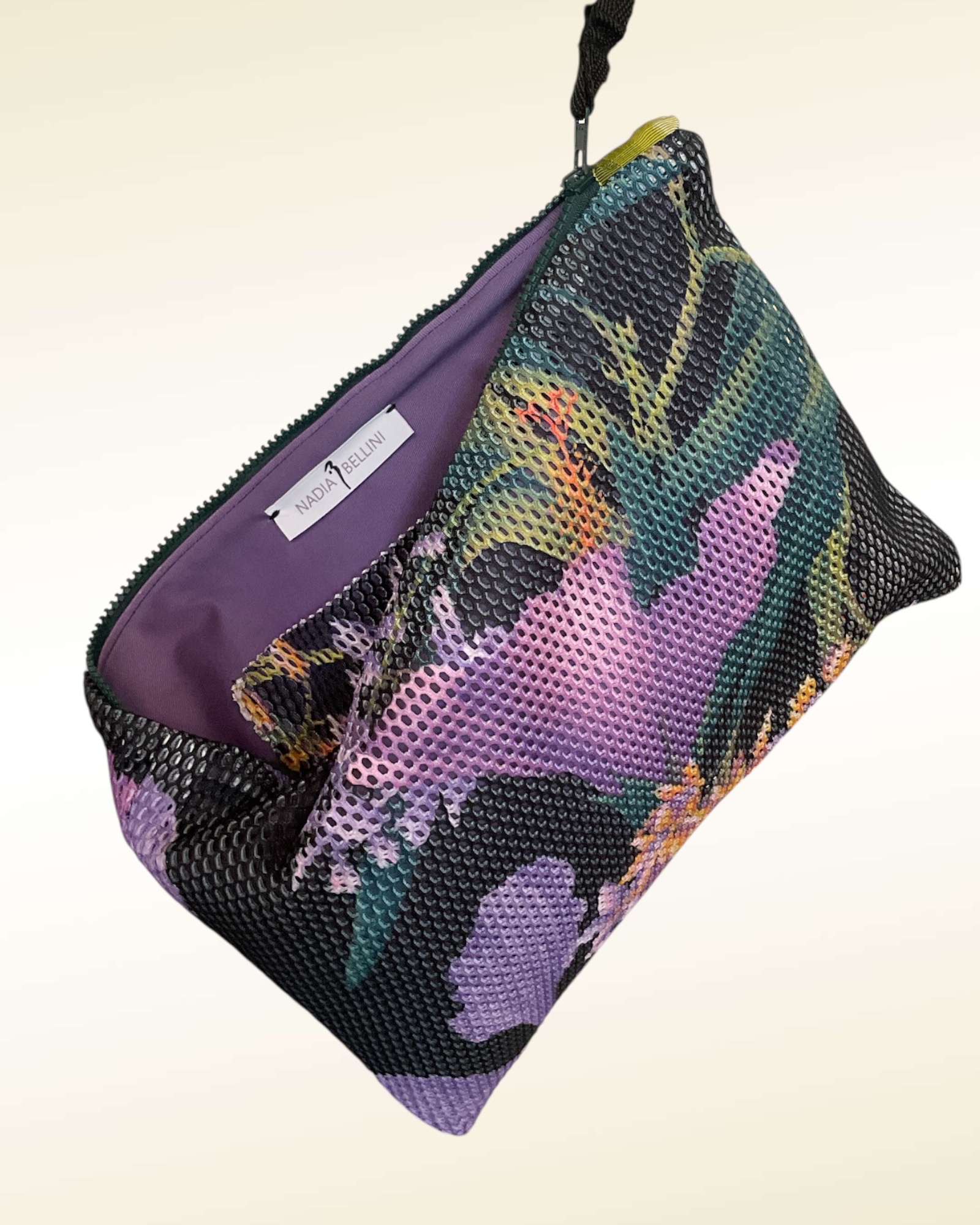 Chiusura con zip e taschino interno. Possibile abbinare shopper