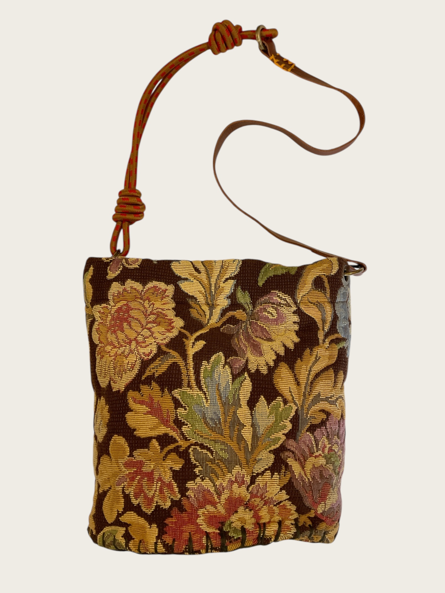 Secchiello realizzato con grosso tessuto tapestry. Base ovale